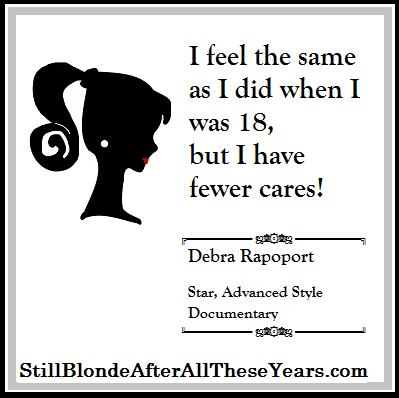 I feel the same as I did when I was 18, but I have fewer cares! ~Debra Rapoport