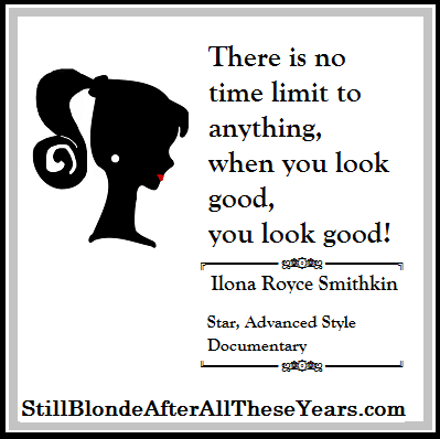 There is not time limit to anything, when you look good, you look good! ~Ilona Royce Smithkin