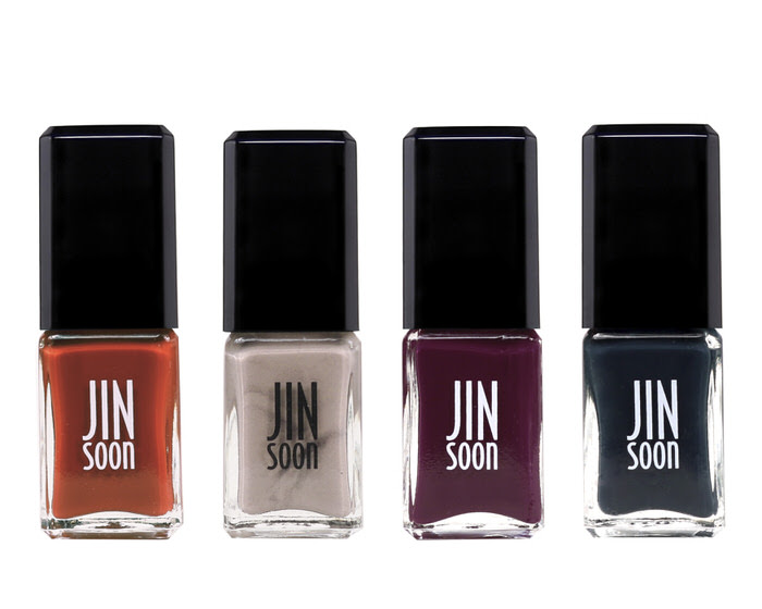 Colors in the JINsoon FW17 line Art Nouveau Collection consist of (left to right) Milieu (taupe smoky nude), Abyss (nocturne blue), Idyll (brick red), and Fable (aubergine purple). Price: $18 each available at the Jinsoon website.
