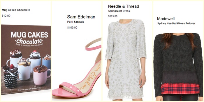 My dad has fallen for mug cakes so I grabbed that book for him. I am crossing my fingers that the Sam Edelman pink sandals are as cute on as in the picture, I think I will be able to pair them with so many things this summer. I bought the Needle and Thread dress in hopes of wearing it to a OPAL ball that I have coming up–fingers crossed it fits. I have been stalking this Madewell sweater for ages, it comes in white as well.