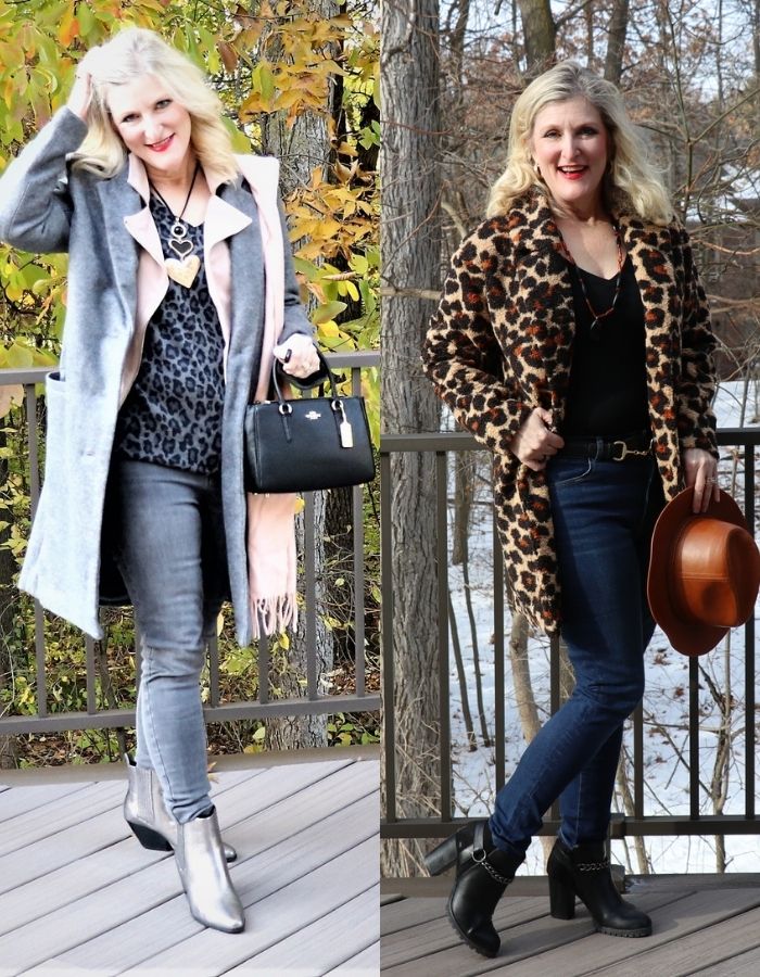 In most of the US, weather is NOT like Camelot right now. One minute it is brrr cold and then next minute it’s warm and sunny. During this time, you need a transition coat, one that will keep you warm but not be so hot for warmer days. I love the two above for just that reason. The wool goes with everything from casual to dress while the leopard is just plain fun and cozy (but not too heavy).