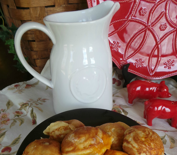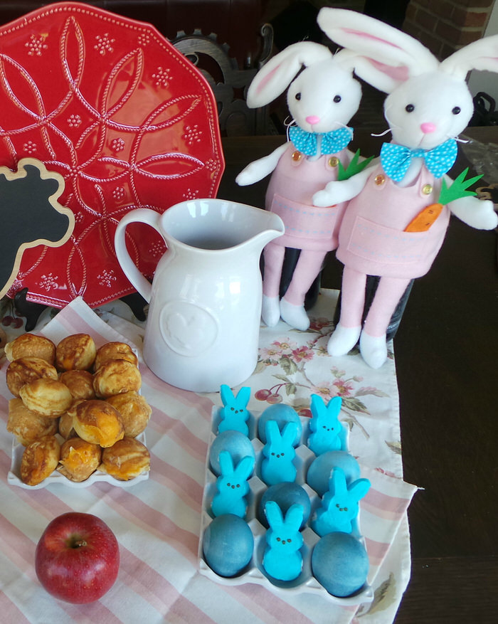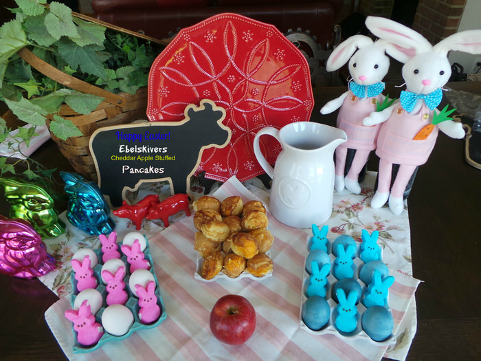 The menu for the Easter day buffet was Cheddar Apple Stuffed Ebelskivers which are a Danish stuffed puffed pancake. I will be providing the recipe for those in a later post. You can see how the Food Network for Kohls items just make the whole buffet pop.
