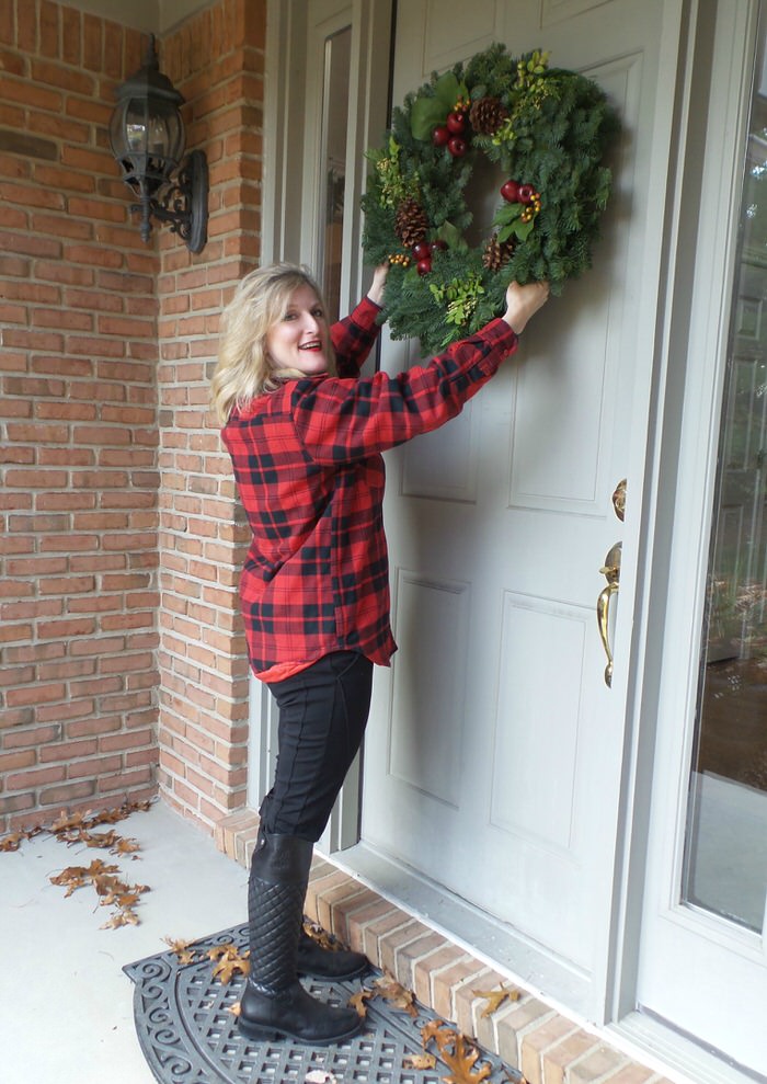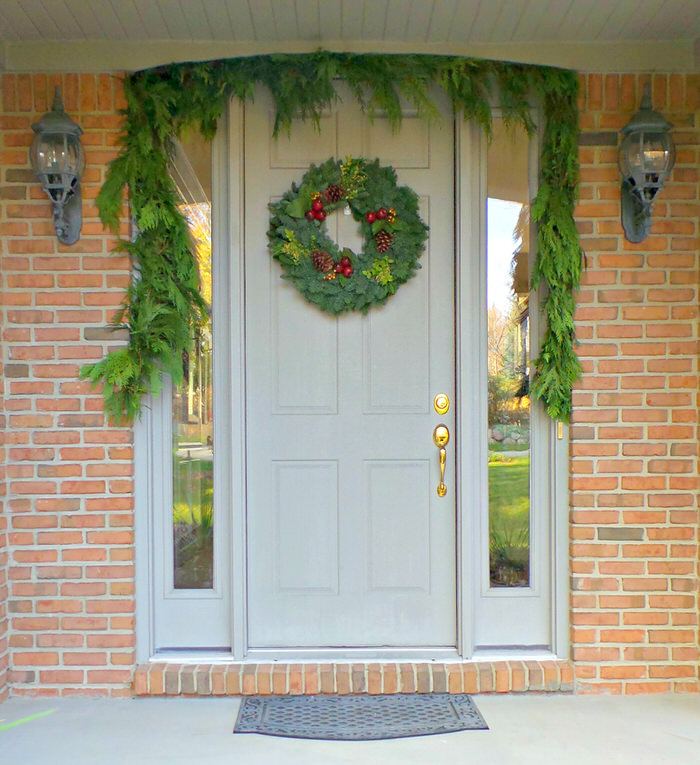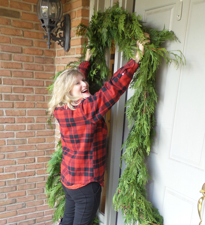 Northwest Wreaths sent us along this beautiful Country Side wreath and Western Red Cedar garland to dress up our holiday entrance.