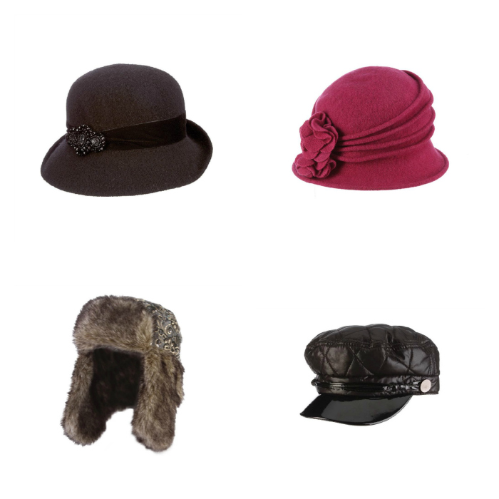 (Left to Right, Top to Bottom) Marie boiled wool cloche by Callanan, Grace sophisticated wool cloche by Scala, Florent Trooper hat Designed by Scala, Emma fisherman cap designed by Callanan