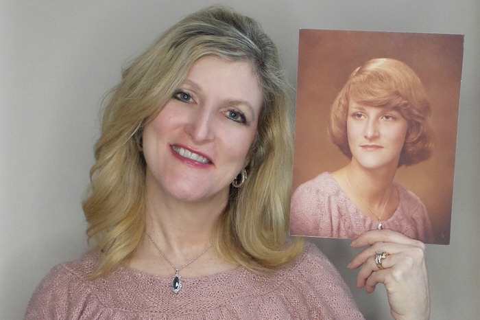 On the left, is “present day me”…55, a little blonder, a tad bit heavier, 4 children for the better, and a lot more experienced in love and loss.
