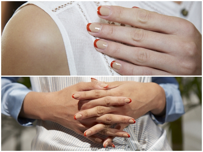Veronica Beard took inspiration from Miami Beach in the 1970’s for the Spring/Summer 2016 collection. To pair with the “baked out” color palette, Glamsquad for essie created a statement half moon nail look by using clambake, a creamy red-orange, on the tip of the nail.