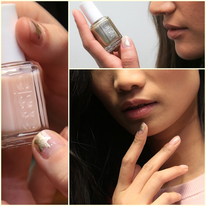 This season, Michelle Saunders for essie was captivated by a star design from a textile in the Jenny Packham collection, which sparked the idea of a star-studded nail look. For the base color she chose Essie , a classic, grown-up pink, to highlight the star. As for the nail design, she selected Essie metallic shade and placed the “petite” star on the thumb and a sporadic finger on each hand to create more visibility when on the catwalk.