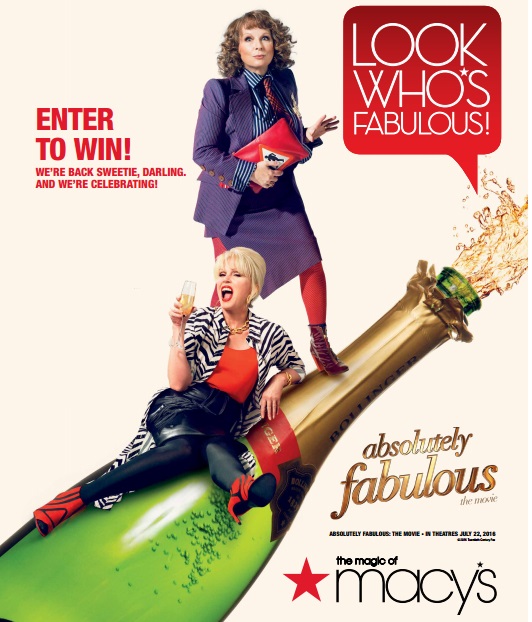Want to be like Patsy and Eddy? To celebrate the premiere of Absolutely Fabulous, The Movie, Macy’s is launching an absolutely fabulous contest starting June 1st to win a makeover and attend the premiere of the film in New York City! ($3629 value!)