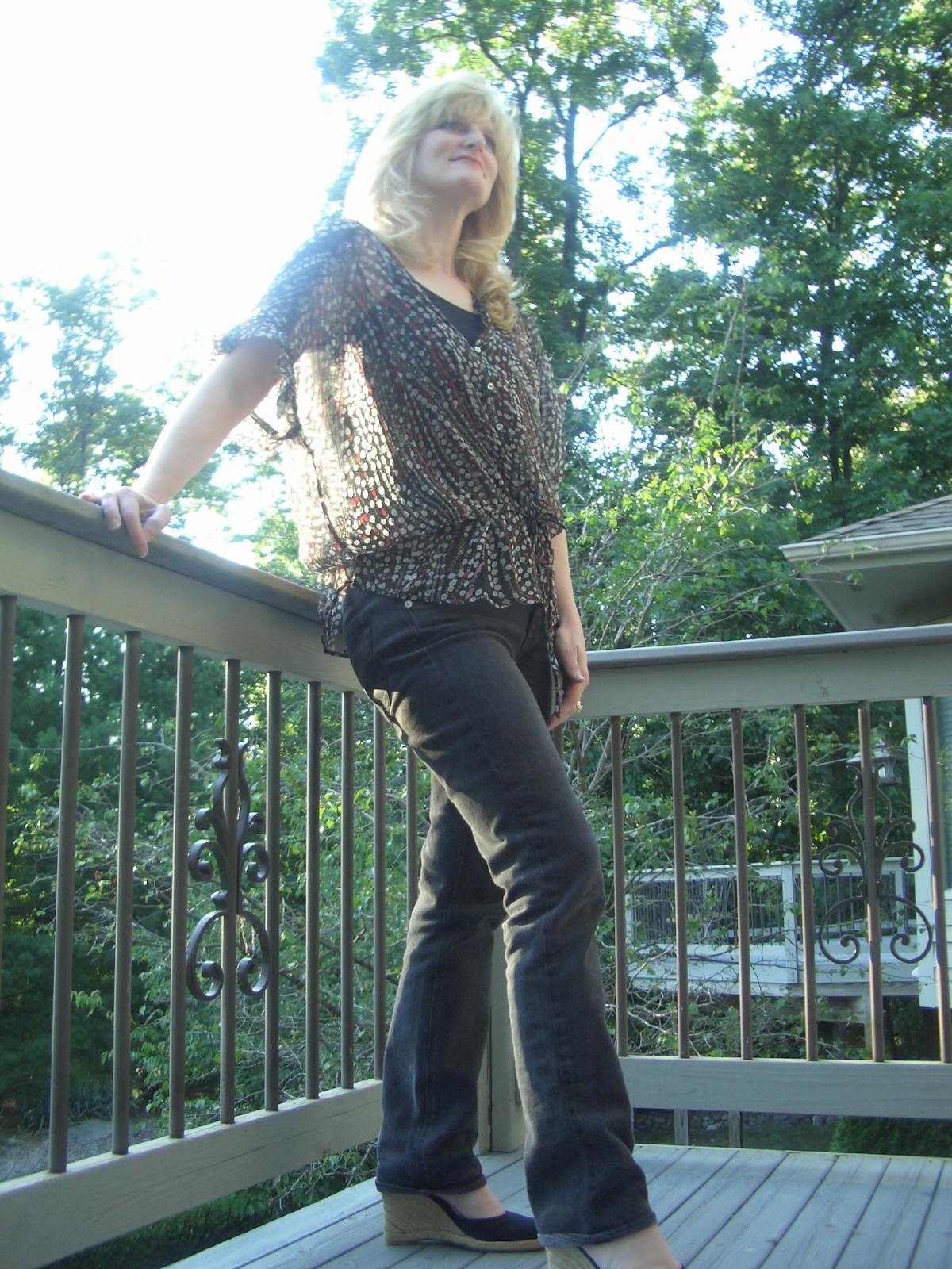 I like this top because it is modern and up to date. I also like that it has a small sleeve on it. I love anything that goes well with jeans. Keep up the great modeling!