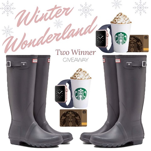 TWO FOLLOWERS will win Hunter Boots of Choice, an Apple Watch, and a Starbucks Gift Card OR the choice to take CASH ($450 each).