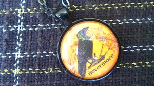 Raven Pendant — Can’t you just see yourself wearing this with all your black clothing this October? On a 26″ chain, you can rock it with tunics and turtlenecks. I like the spooky nature of the piece and the vintage charm. Handmade. By Georgia Teaberry on Etsy. $14