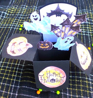 Halloween Pop-up Card — Isn’t this the cutest darn card? Can’t you see someone using this as a wedding proposal box? I have never seen a card/box quite so alive. Handmade using archival card stock. Find more at QueenBeeInspirations on Etsy.com $7