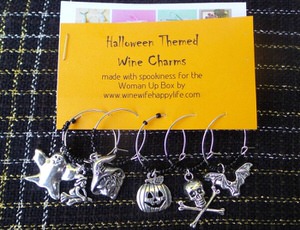 Halloween Themed Wine Charms — Protect your wine from all the other goblins with these adorable Halloween Themed Wine charms. There is a ghost, a witch, a Witch on a broom, a pumpkin, a skull and a bat. I loved these for an additional Halloween twist to any party. From Wine Wife Happy Life. Buy this month’s Woman Up Box and get the code for 15% off. $8