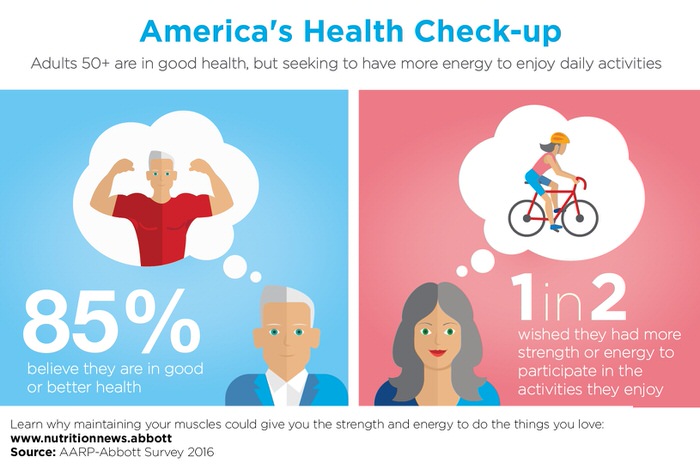 Did you know that according to a new survey by Abbott/AARP, while 85% of Americans 50+ believe they are in good health, that one in two reported that they wished they had more strength and/or energy to participate in activities they enjoy?
